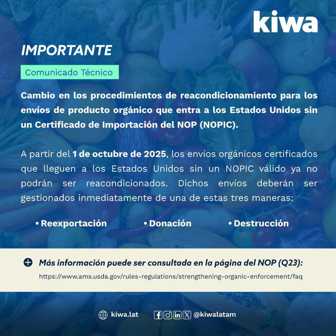 A partir del 1 de octubre de 2025, los envíos orgánicos certificados que lleguen a los Estados Unidos sin un NOPIC válido ya no podrán ser reacondicionados.