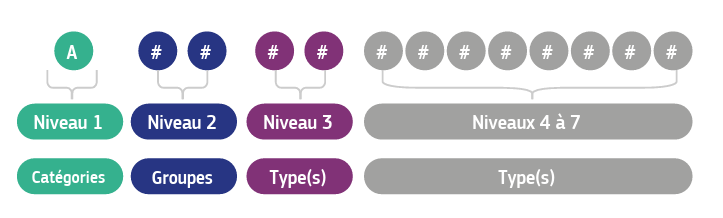 - Groupe (deux chiffres) – Classification plus précise au sein de la catégorie