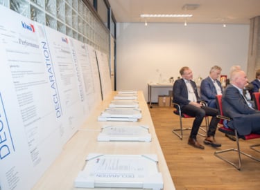 Kiwa reikte op 10 september de eerste certificaten uit in het kader van de nieuwe keuringseis KE 214 ‘Geschiktheid voor bijmenging tot en met 100% waterstofgas’. Deze keuringseis bevat eisen voor componenten die worden gebruikt in waterstofgasnetwerken. Negen fabrikanten ontvingen het KE 214 certificaat uit handen van Kiwa’s Ronald Karel en Bart Vogelzang, voorzitter van het College van Deskundigen.
