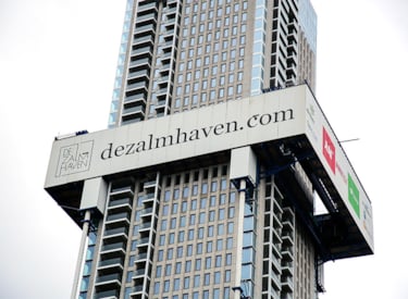 Met een hoogte van 215 meter omvat De Zalmhaven toren I de hoogste wolkenkrabber van de Benelux. Het totale complex (Zalmhaven toren I, II en III) telt in totaal 452 appartementen en penthouses, 33 herenhuizen, een parkeergarage, kantoren, commerciële ruimtes, een daktuin en een restaurant. Het spreekt voor zich dat de brandveiligheid in dit gebouw optimaal moet zijn. | ![]() |
