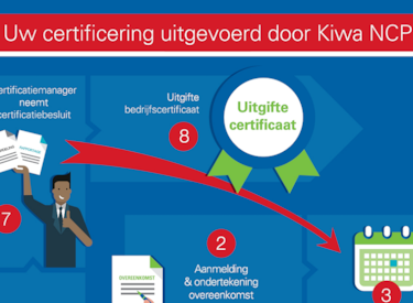 Alle stappen van aanvraag tot uitgifte van het bedrijfscertificaat zijn opgenomen in de infographic ‘Uw certificering uitgevoerd door Kiwa NCP’.