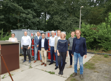 Foto: V.l.n.r. Suzanne van Greuningen (Kiwa), Nard Vermeltfoort (Kiwa), Menno van Luijn (Cleantech Regio), Raphaël van der Velde (Witteveen+Bos), Dieter de Vroomen (Cleantech Regio), Marcel van der Maal (Cleantech Regio), Annemarije Kooijman (Saxion), Laurens Frowijn (Witteveen+Bos), Richard van Leeuwen (Saxion).
