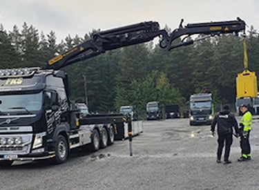 En gång per år utför Kiwa Inspecta en återkommande besiktning av åkeriets fordonskranar. Besiktningen är ett myndighetskrav som gäller alla fordonskranar över 12 tonmeter, men i grunden handlar det om säkerhet. Besiktningens syfte är att kontrollera kranens säkerhetssystem och att kranen inte har skador och förslitningar som kan utgöra en fara vid användning. Därmed minskas risken för både olyckor och oväntade driftstopp.